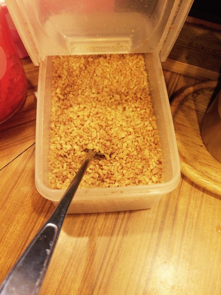 정신없이 먹다가 땅콩가룬가? 넣어볼까? 했는데 마늘후레이크.. ㄱㄱ 밥이 안 보이도록 덮어 먹었다.
